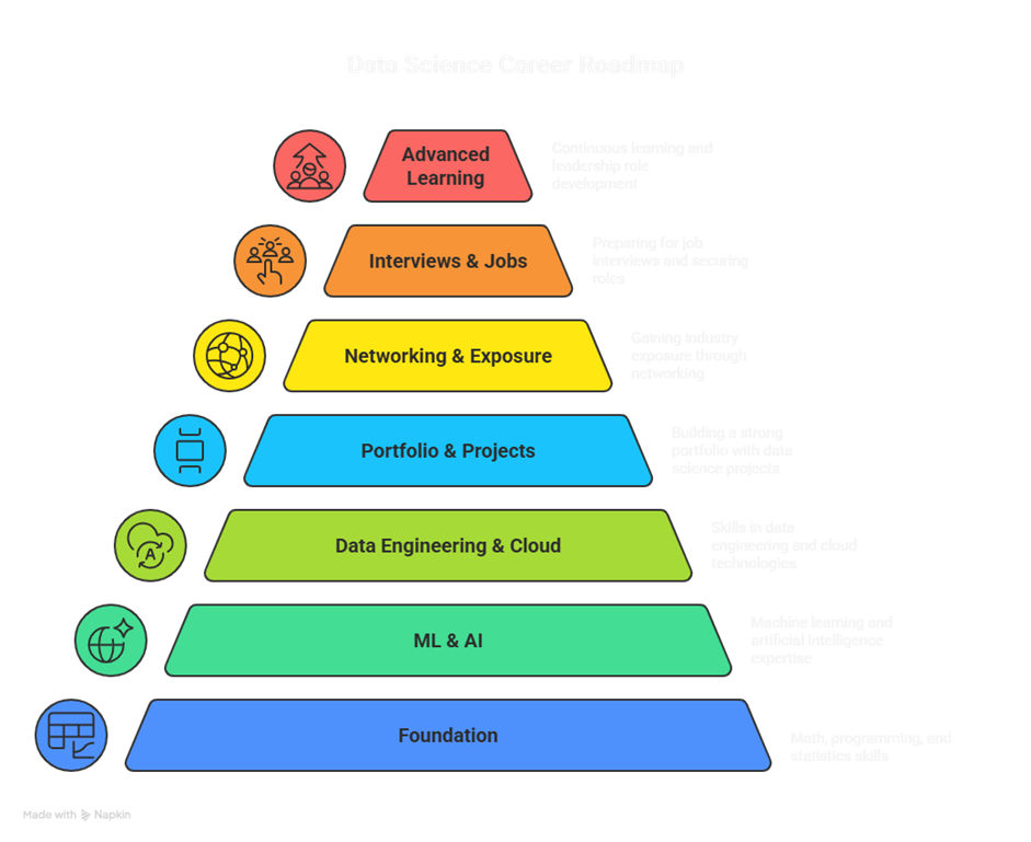 This blog provides a comprehensive, actionable roadmap for aspiring data scientists, including skills, tools, certifications, projects, and career progression.