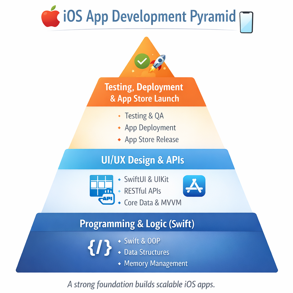 Infographic Idea: Visualize iOS App Development as a layered pyramid: