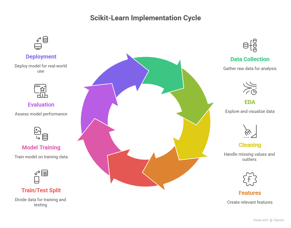 • Arrows show flow of data and stages for Scikit-Learn implementation