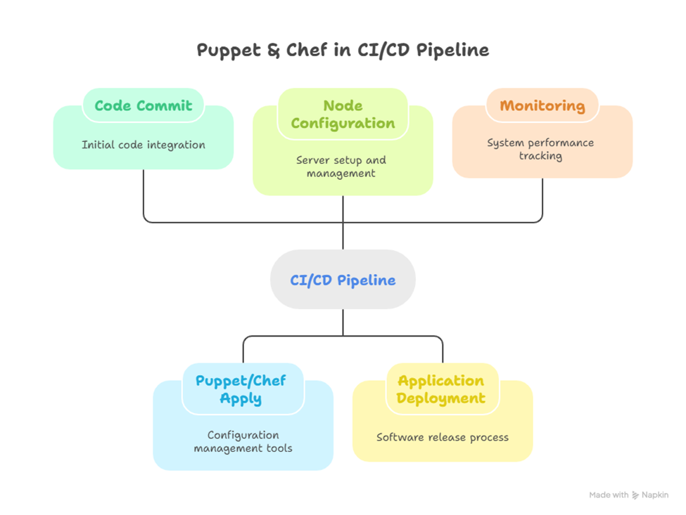 In modern DevOps, configuration management (CM) is a foundational practice that ensures systems are consistent, predictable, and maintainable across development, testing, and production environments. Tools like Puppet and Chef automate system configurations, application deployments, and server management, reducing manual errors and increasing operational efficiency. At CuriosityTech.in, we teach DevOps engineers how to master CM tools as part of a complete CI/CD ecosystem.