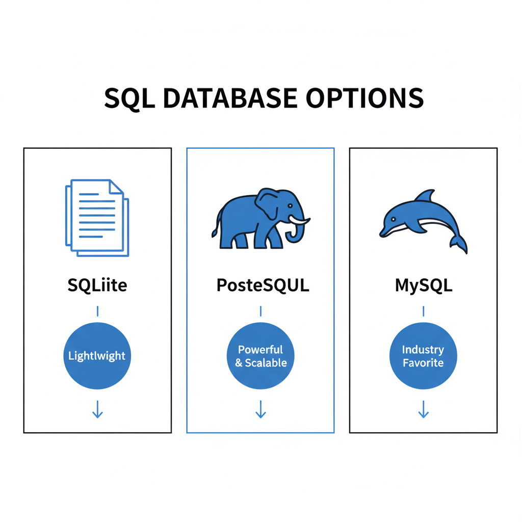• SQLite → Great for small apps or local development (CuriosityTech students use it for training apps).