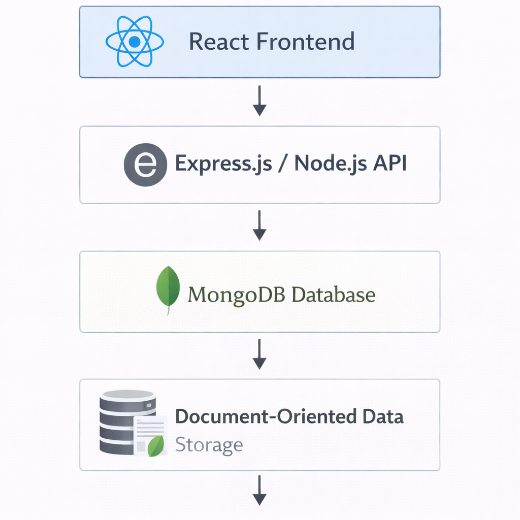 - Real-World Example: In a social media app, user data, posts, comments, and messages are stored in MongoDB, queried efficiently, and delivered to React frontend dynamically.