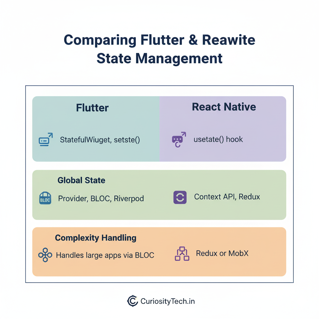 By mastering Flutter and React Native state patterns and leveraging CuriosityTech resources, developers can confidently build high-quality apps that respond efficiently to user interactions.