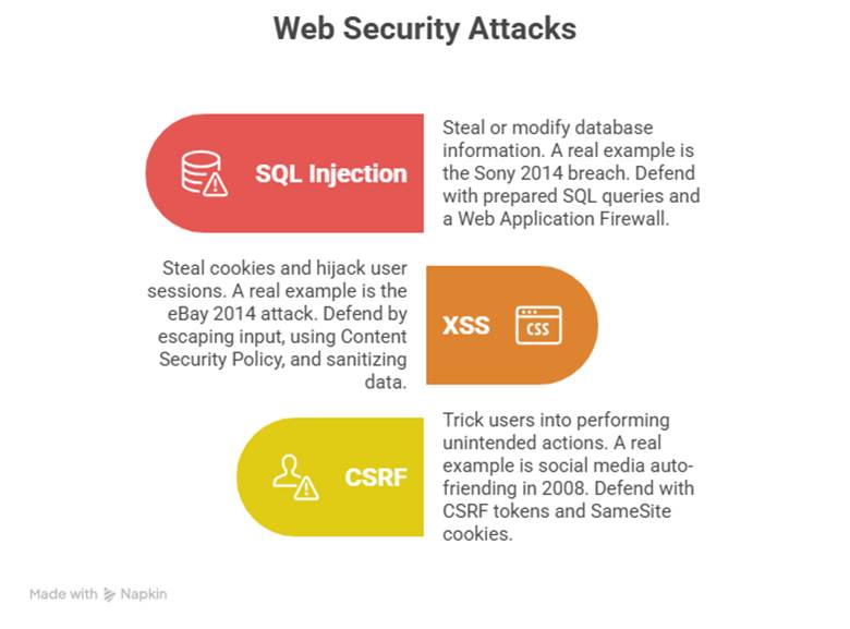 Three of the most dangerous web attack families are SQL Injection (SQLi), Cross-Site Scripting (XSS), and Cross-Site Request Forgery (CSRF). These attacks have devastated businesses, governments, and even small startups who thought “a website is just HTML.”