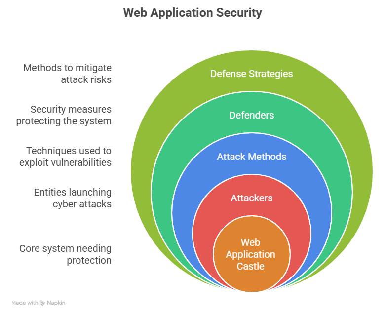- Middle: Web Application castle with gateways showing how attacks are blocked.