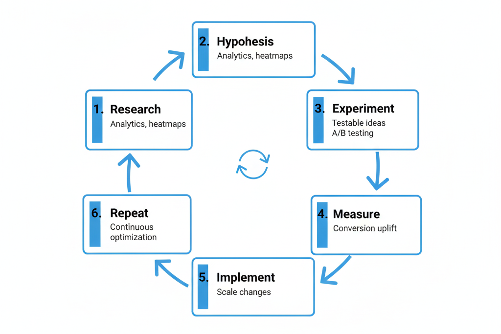 CRO is not a one-time tactic; it’s a continuous cycle of research, testing, and optimization. Businesses that embrace CRO see compounding improvements—higher sales, lower acquisition costs, and stronger customer loyalty.