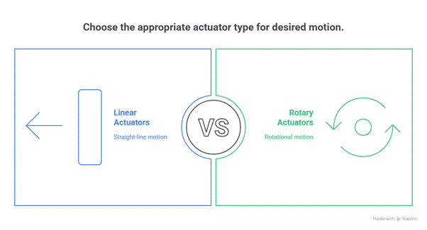 Linear Actuators | Electric motor drives linear screw | Sliding doors, robotic grippers | Converts rotary to linear motion | Limited speed and stroke length |