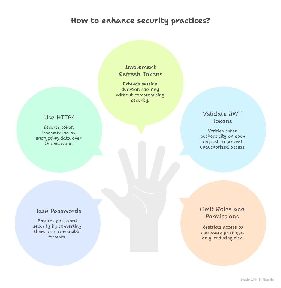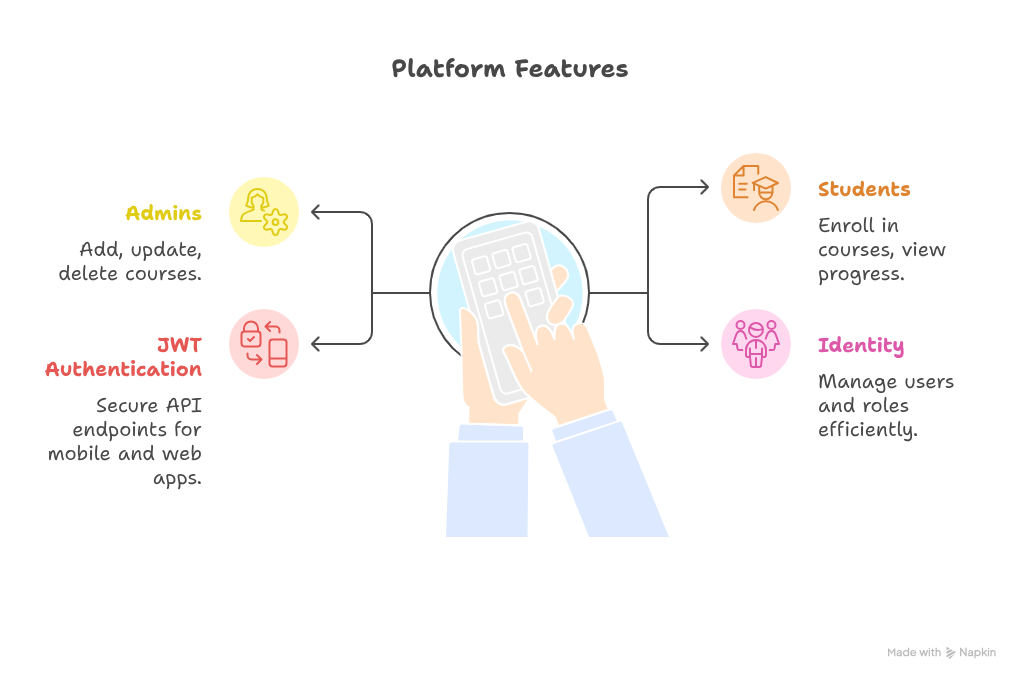 [User Login] –> [Identity Service] –> [JWT Token Issued] –> [API Access]
