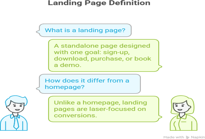Unlike a homepage (broad, multi-purpose), landing pages are laser-focused on conversions.