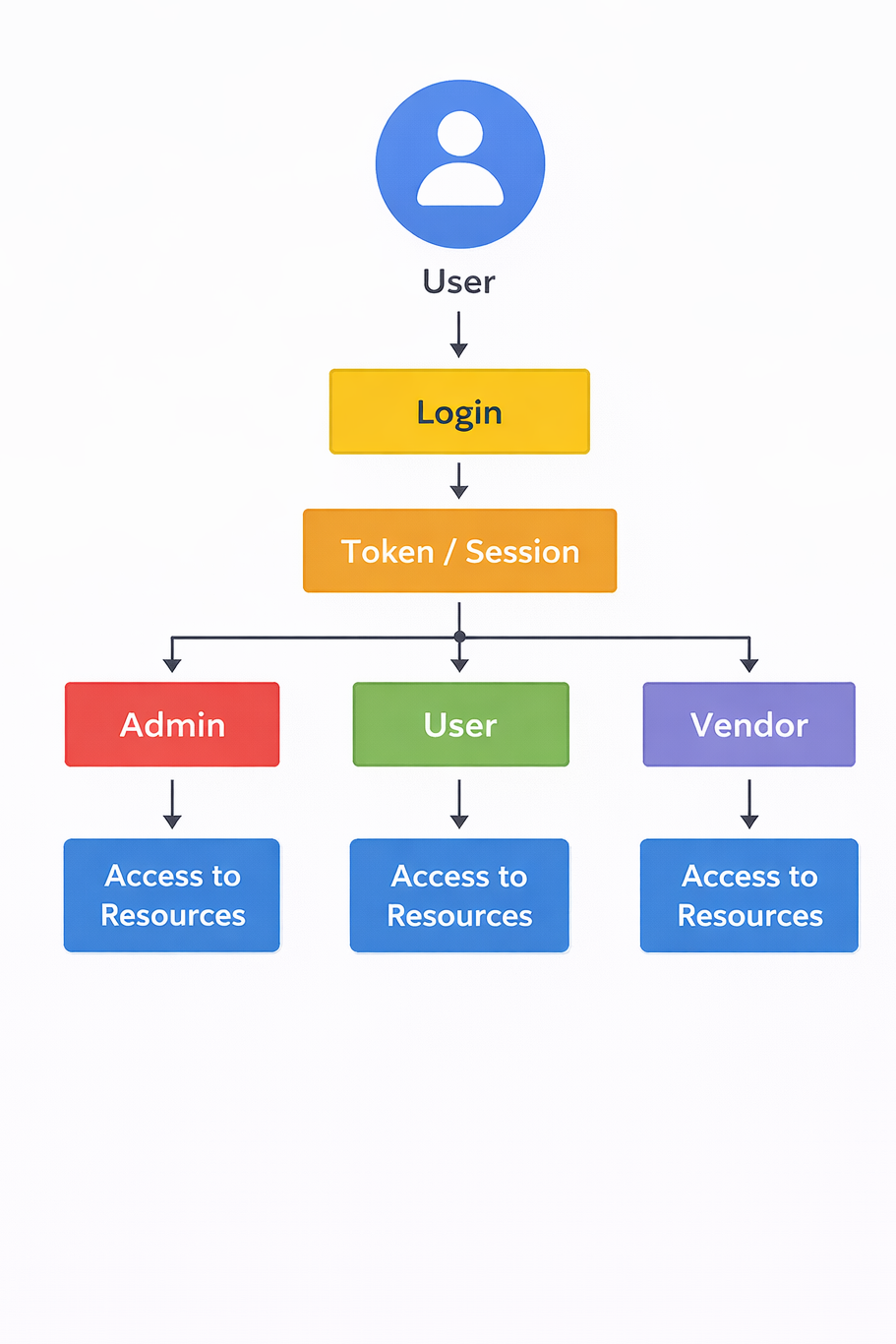 This multi-role architecture was implemented using Django Groups & Permissions, a real example of authorization in action.