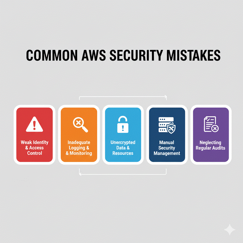- Ignoring encryption for S3, EBS, RDS → data exposure