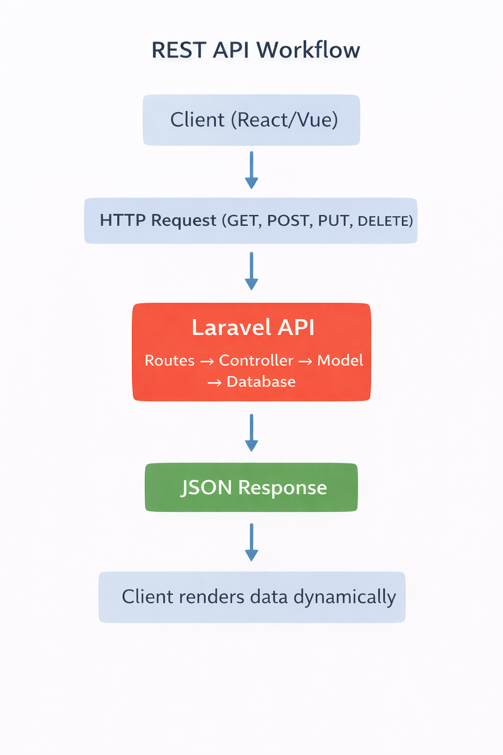 This visual helps learners understand end-to-end API development in Laravel.