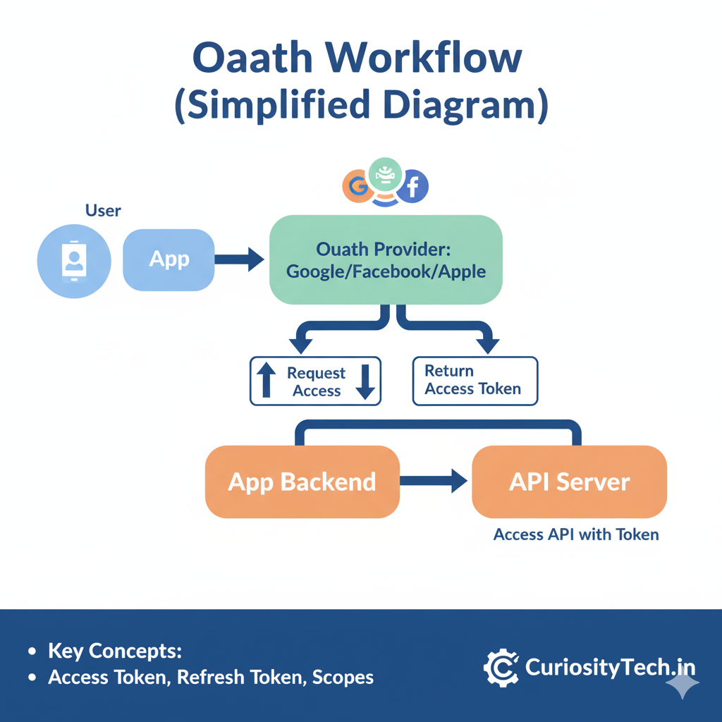 [User] –> [App] –> [OAuth Provider: Google/Facebook/Apple]