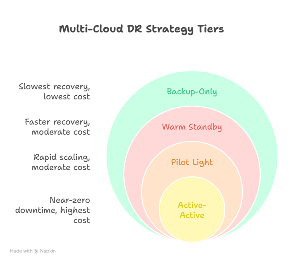 Multi-cloud offers resilience, but resilience only works when backed by a structured Disaster Recovery (DR) strategy.