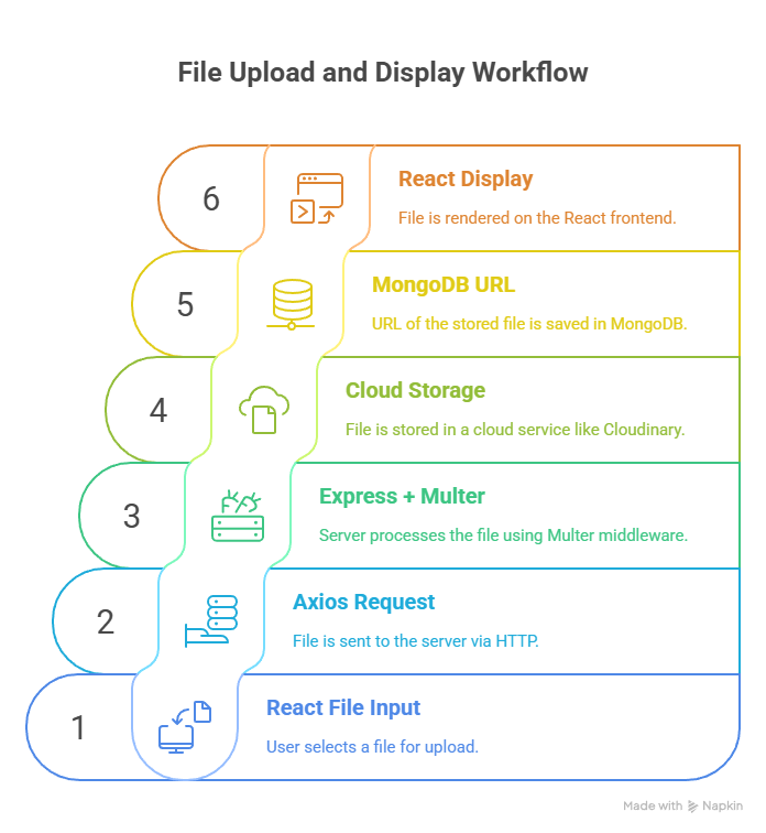 - Store References in Database: Save URLs or paths in MongoDB for efficient access.