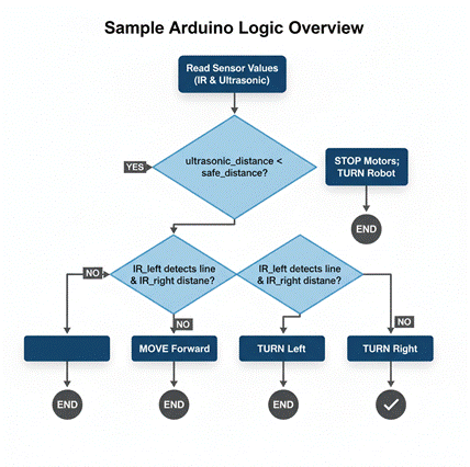 - Calibrate Sensors: Adjust IR and ultrasonic thresholds to match environment.