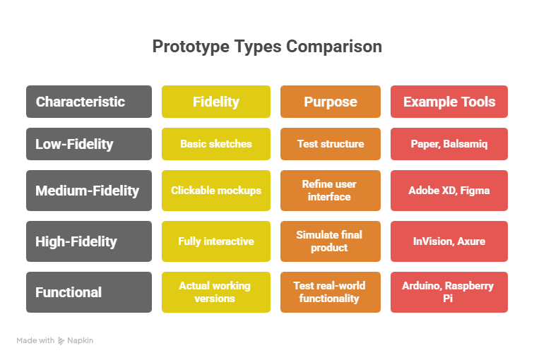 Prototypes can vary from low-fidelity sketches to fully functional digital mockups. The key is to focus on learning and iteration rather than perfection.