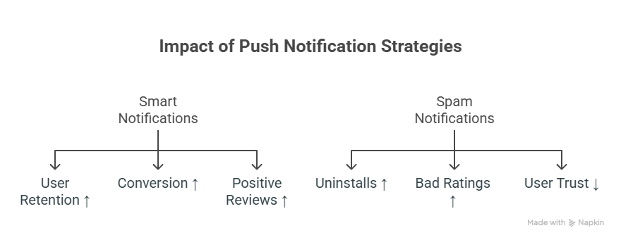 At CuriosityTech, we’ve seen beginners misuse notifications—sending 10+ per day, leading to app uninstalls. A developer once used push for every background API call, and his app got flagged by Google for spammy behavior. Notifications should delight, not annoy.