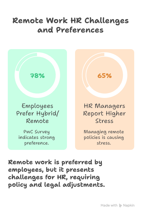 • 78% of employees prefer hybrid/remote (PwC Survey).