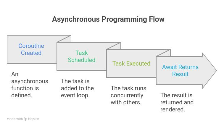 In the modern web, speed is everything. Imagine a Python web app that fetches multiple APIs or database queries sequentially—it becomes slow and unresponsive. This is where asynchronous programming comes to the rescue.