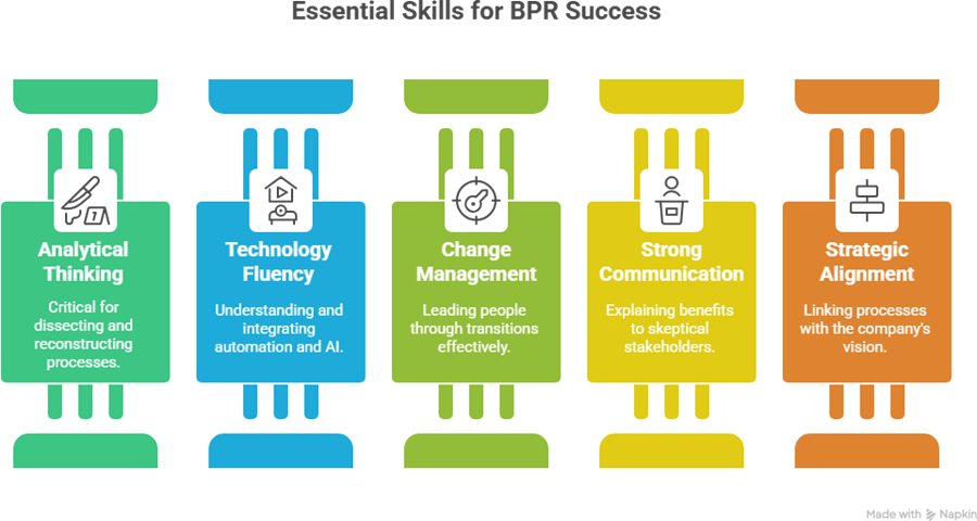- Redesign: Apply radical rethinking (automation, outsourcing, restructuring).
