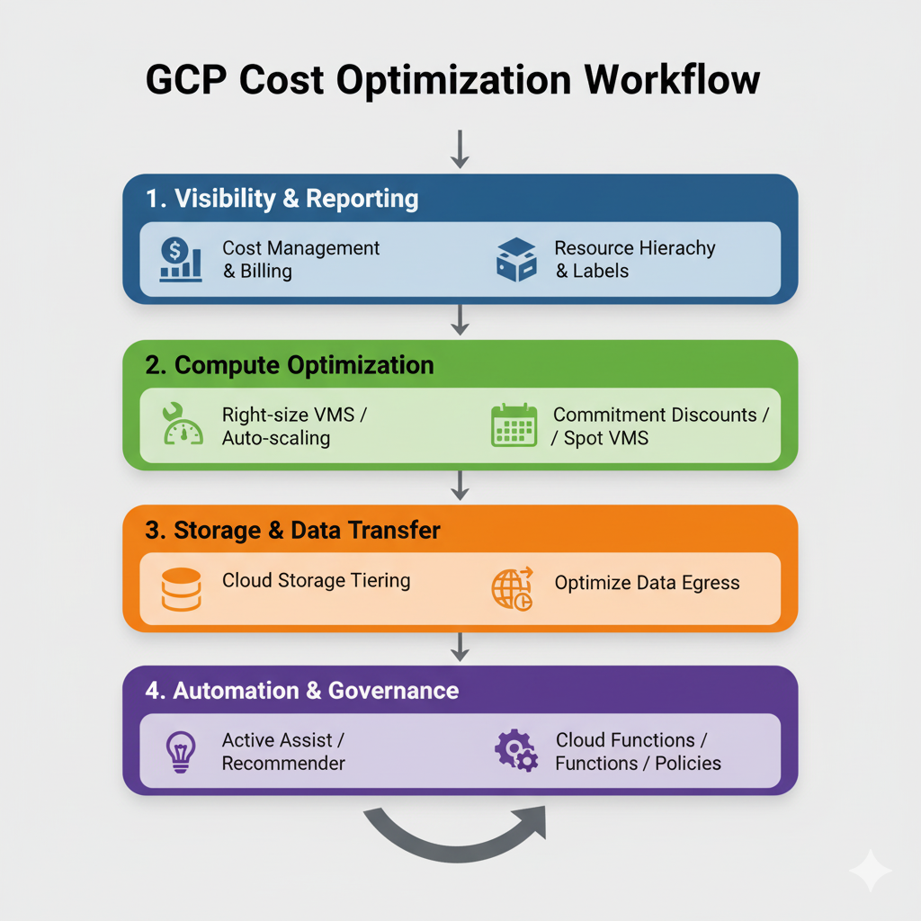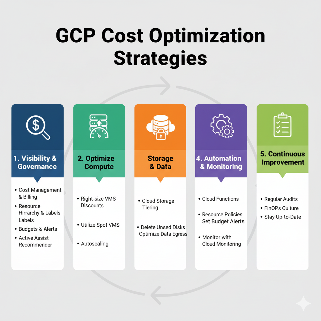 Cost optimization in GCP is a continuous process that combines monitoring, automation, intelligent recommendations, and smart architectural decisions. Engineers who master these strategies can significantly reduce cloud expenses without compromising performance or availability.