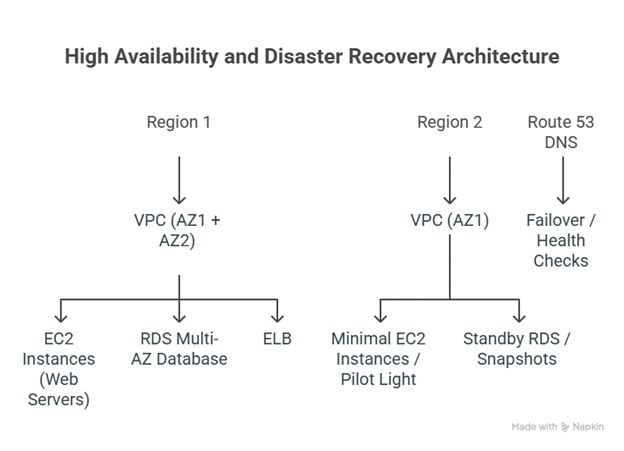 High Availability and Disaster Recovery are critical components of cloud architecture. Understanding multi-AZ deployment, failover strategies, and backup mechanisms ensures systems remain resilient, reliable, and cost-effective.