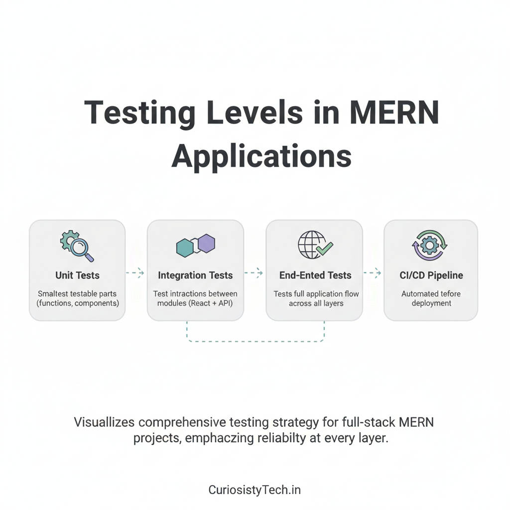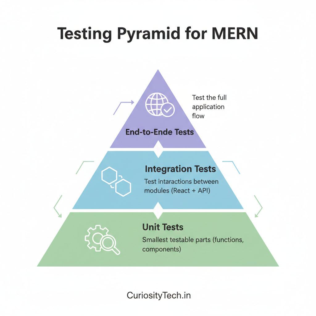 - Description: Visualizes comprehensive testing strategy for full-stack MERN projects, emphasizing reliability at every layer.
