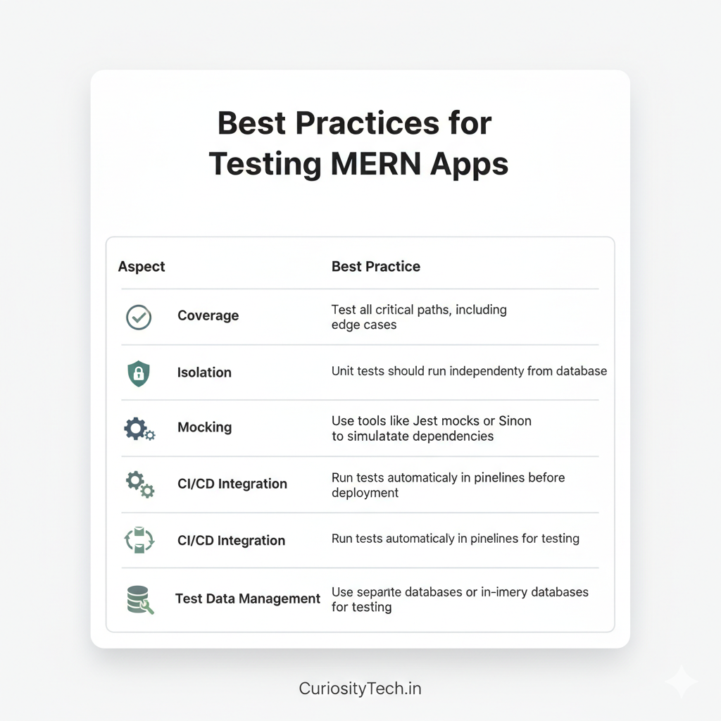 CuriosityTech.in provides guided hands-on testing projects, teaching learners to write thorough test suites for MERN applications, improving reliability and maintainability.
