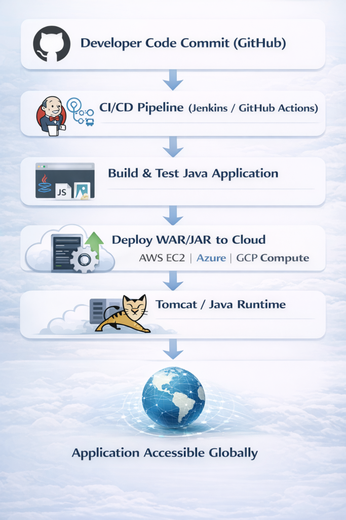 Cloud deployment has become an essential skill for Java Full Stack Developers. Hosting applications on cloud platforms like AWS, Azure, or GCP allows for scalability, high availability, and cost-efficient infrastructure. Instead of relying on local servers, developers can deploy Java applications globally, ensuring fast, reliable, and secure access for users.
