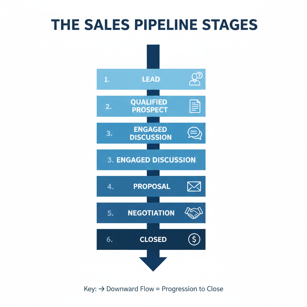 The sales pipeline shows every deal from first contact to closed sale. It allows managers to see where opportunities stand and what actions are needed.
