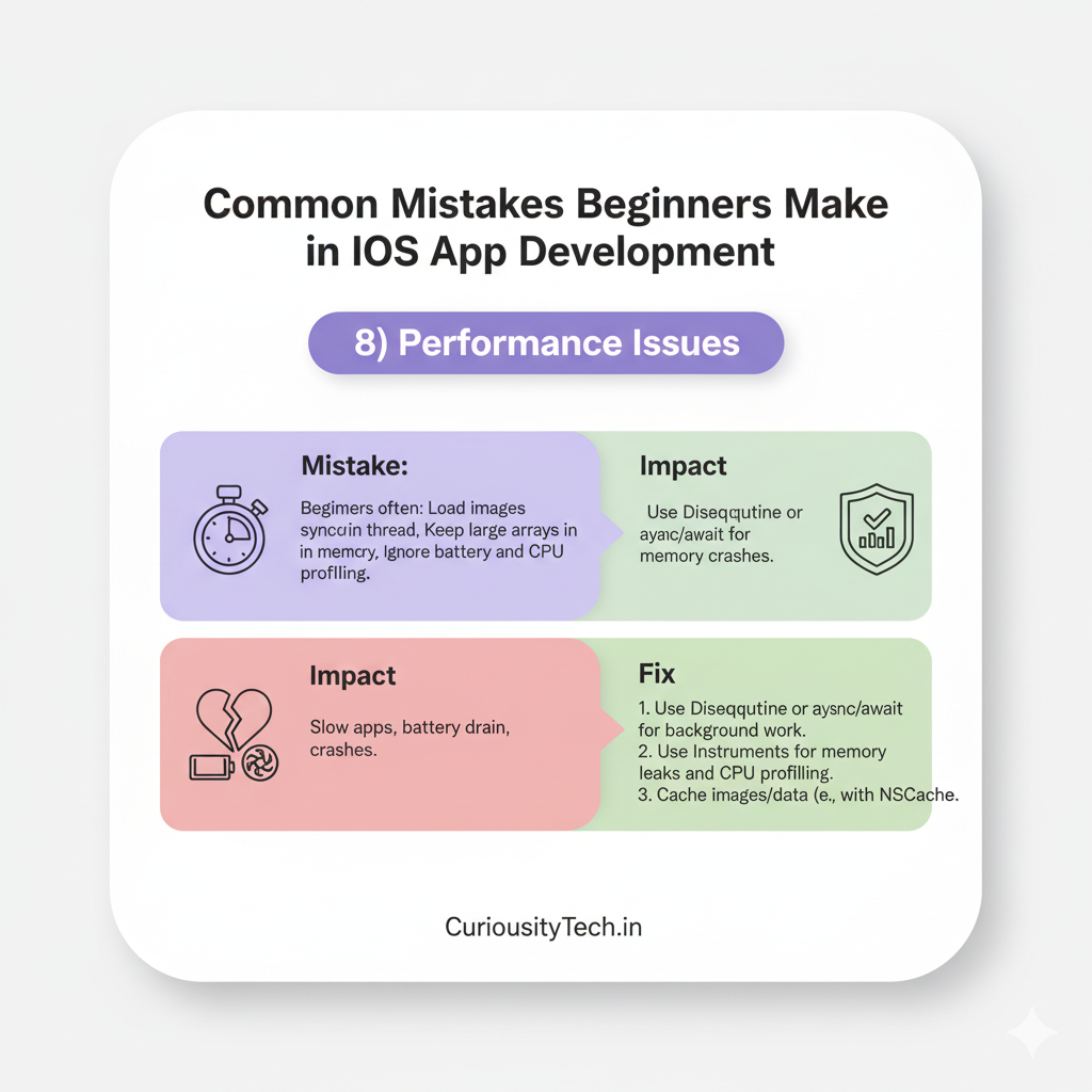 - Impact: Poor user experience, App Store rejection.