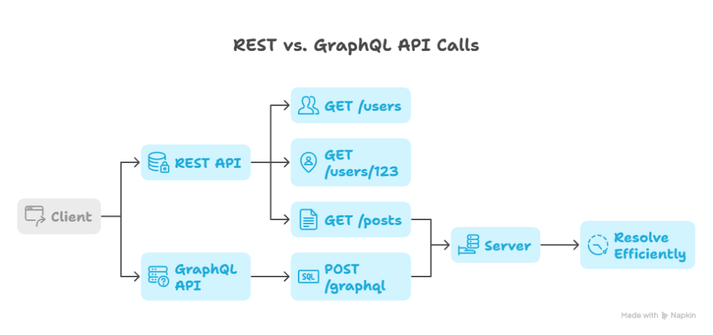 | Caching Strategies | REST: HTTP cache headers; GraphQL: Apollo caching or server-side caching |
