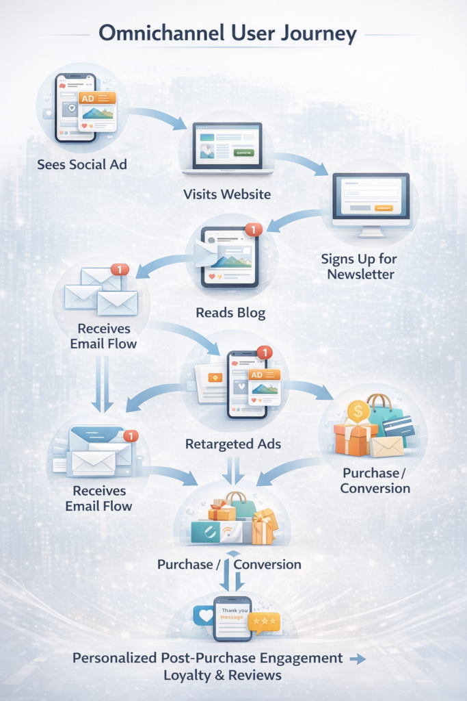• Definition: Consistent messaging across social media, email, mobile apps, websites, offline stores