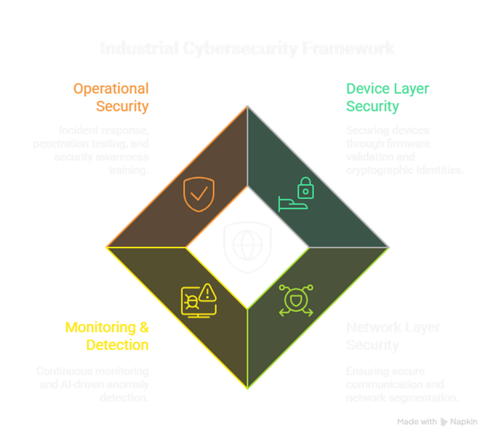 • Regular Penetration Testing & Audits: Focused on industrial communication protocols, firmware, and cloud interfaces.