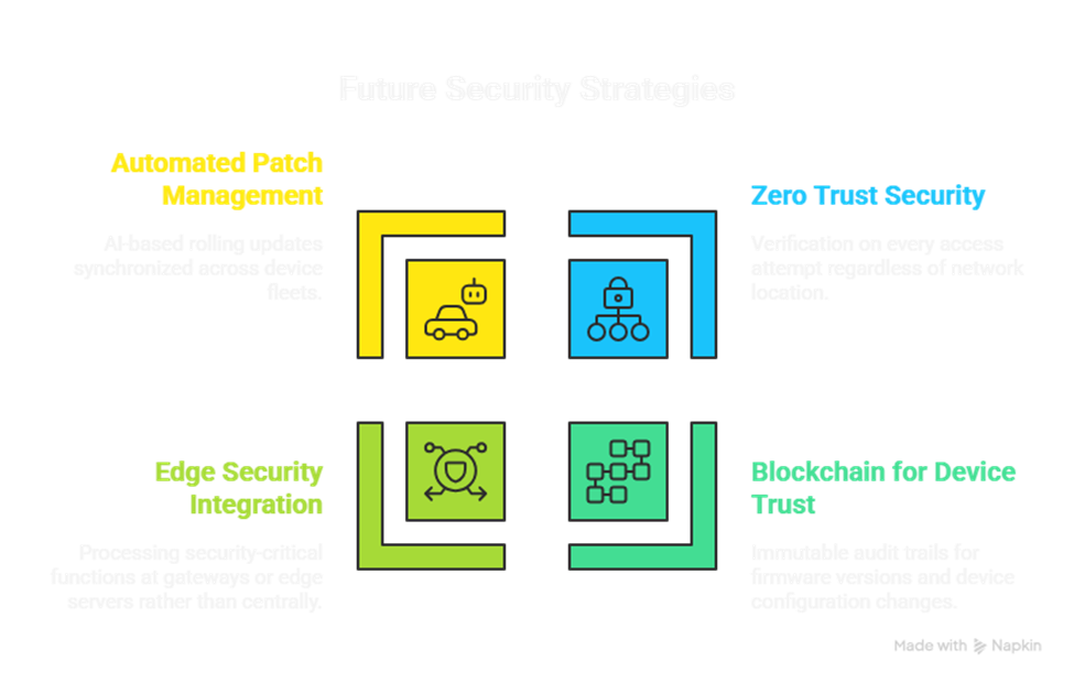 • Blockchain for Device Trust: Immutable audit trails for firmware versions and device configuration changes.