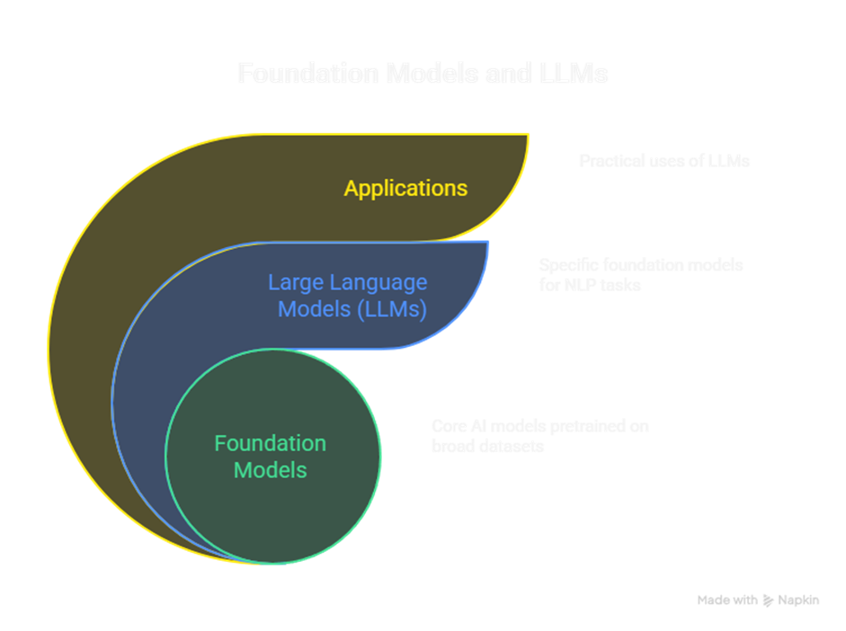 Definition: Foundation models are pretrained at scale on broad datasets and can be adapted for multiple downstream tasks. LLMs like GPT-4, GPT-5, and BLOOM are transforming NLP, chatbots, and code generation.