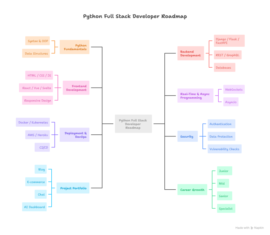 �� Tip: Python Full Stack developers must bridge backend APIs and dynamic frontend interfaces.