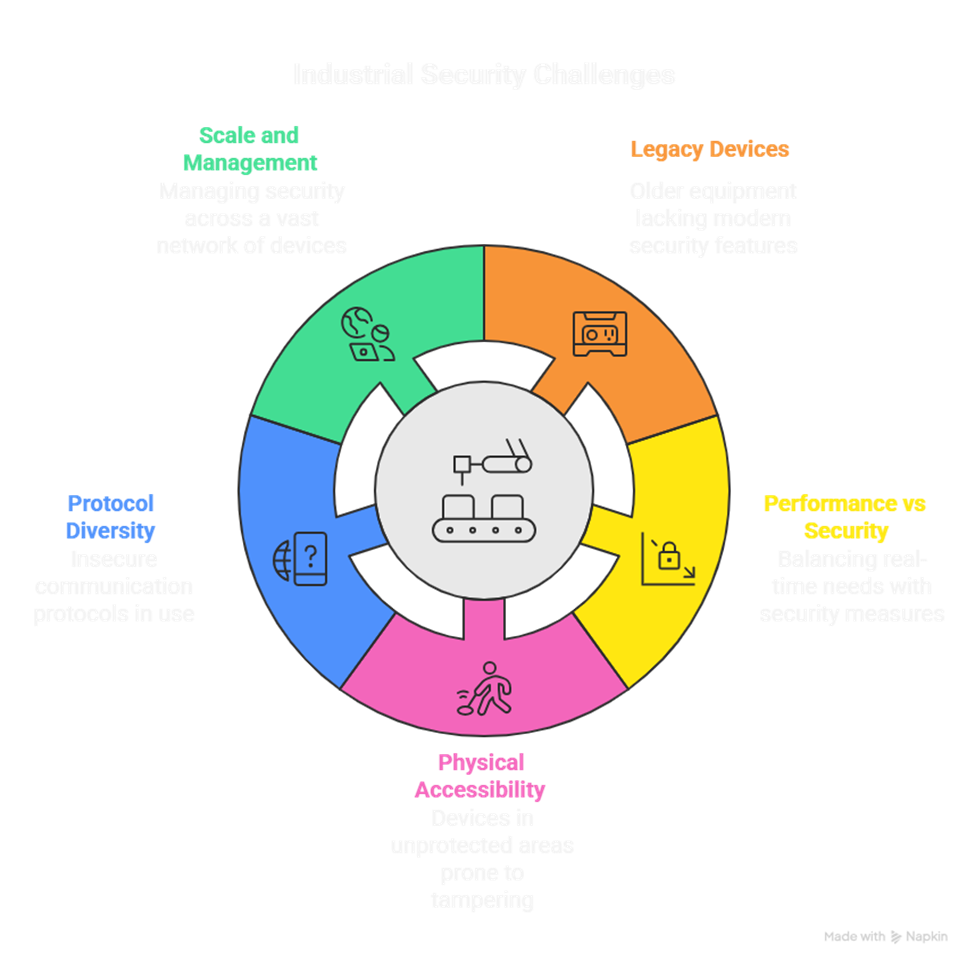 - Legacy Devices: Older industrial equipment often lacks modern security features.