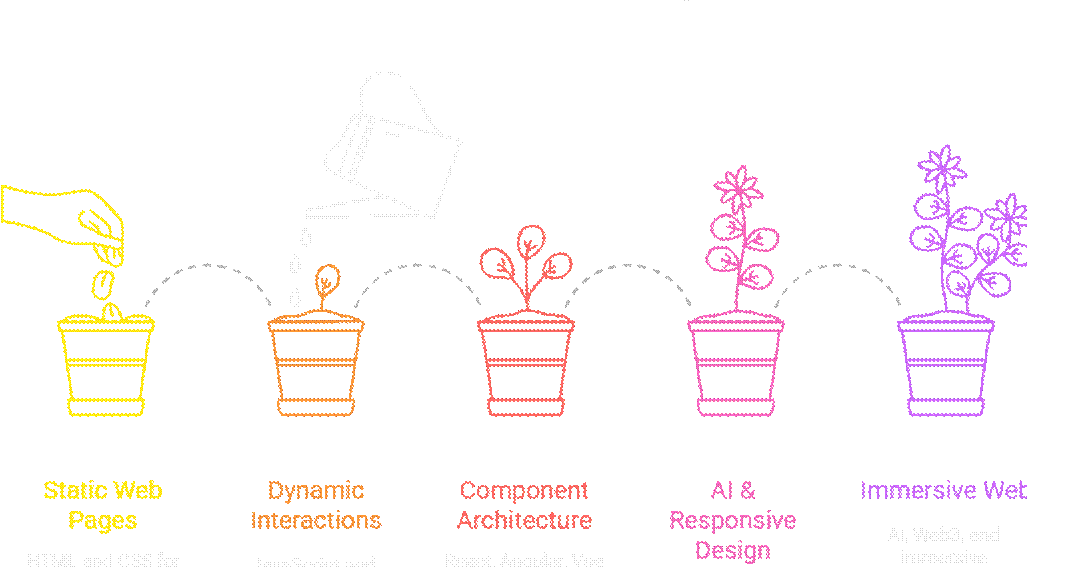 Infographic Description: This timeline visually represents how frontend development has progressed from static content to AI-powered, decentralized, and immersive web experiences.