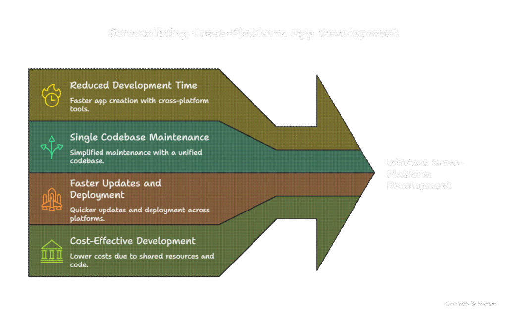 Cross-platform development allows building apps for multiple platforms (iOS, Android) using a single codebase, reducing development time and maintenance. Flutter and React Native are popular frameworks. - Difference between Flutter and React Native?