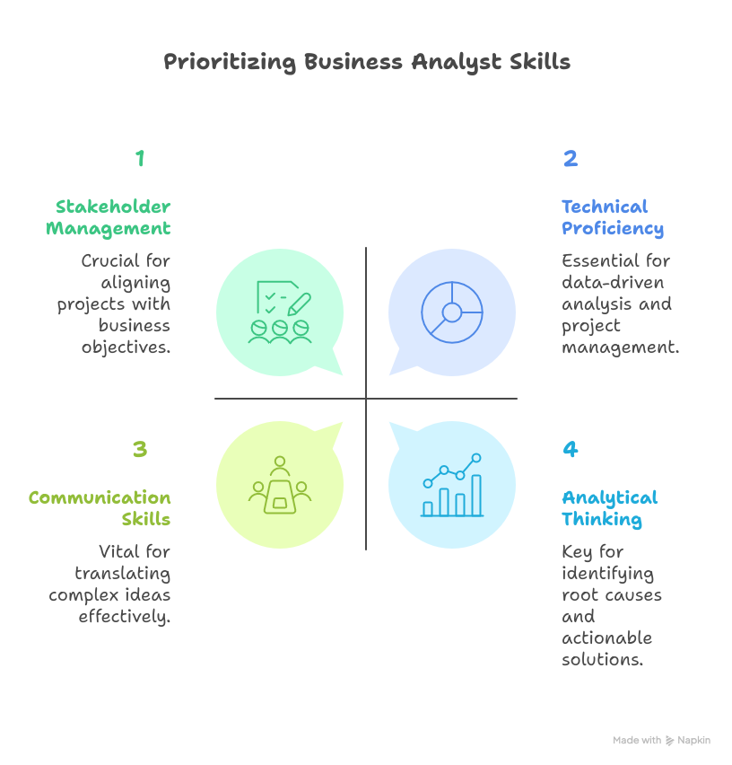 Infographic Suggestion: A simple hierarchical diagram showing Stakeholder Influence vs. Interest, helping readers visualize how BAs prioritize stakeholder engagement.