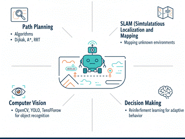 AI & MLObject recognitionPath planning & SLAMReinforcement learning, autonomous decision making