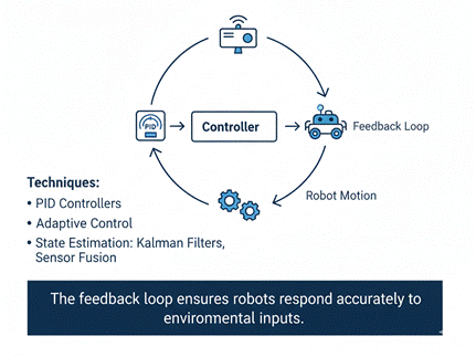 Diagram Idea: Sensors → Controller → Actuators → Robot Motion → Feedback Loop