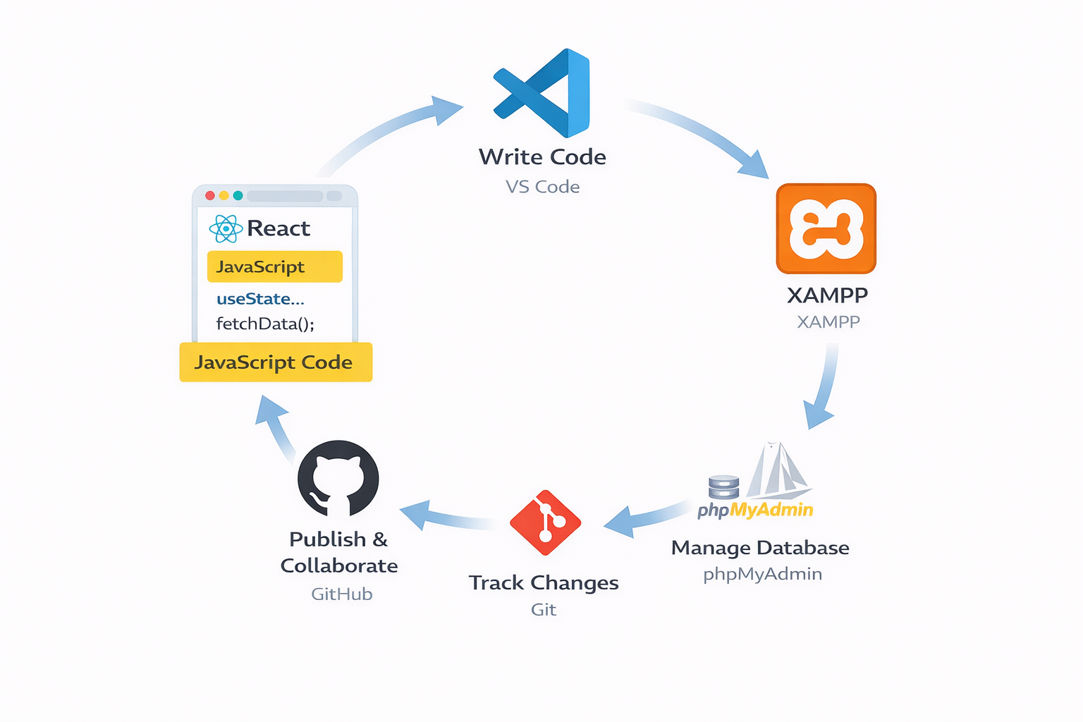 Your tools are not just software—they are companions on your developer journey. From setting up XAMPP for local PHP projects to writing clean code in VS Code and collaborating globally via GitHub, this setup forms the backbone of every PHP Full Stack Developer.