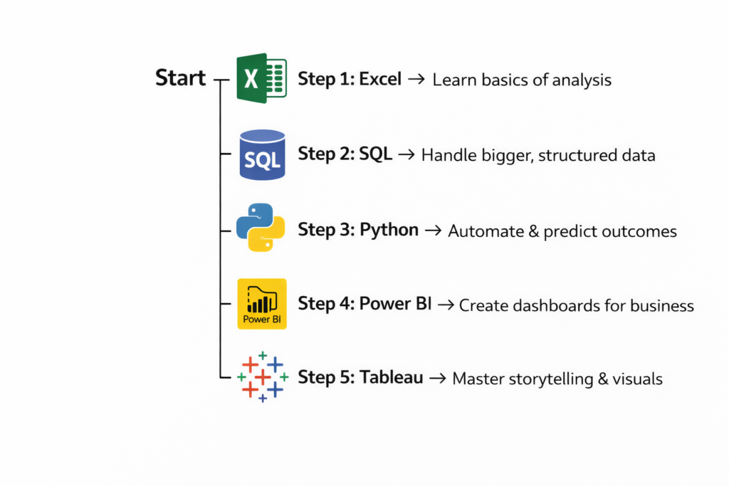 - If you are from a non-tech background → Start with Excel & Power BI.