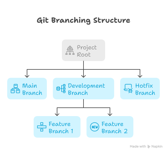 Using this branching strategy ensures a clean, conflict-free development environment, which is crucial for teams.