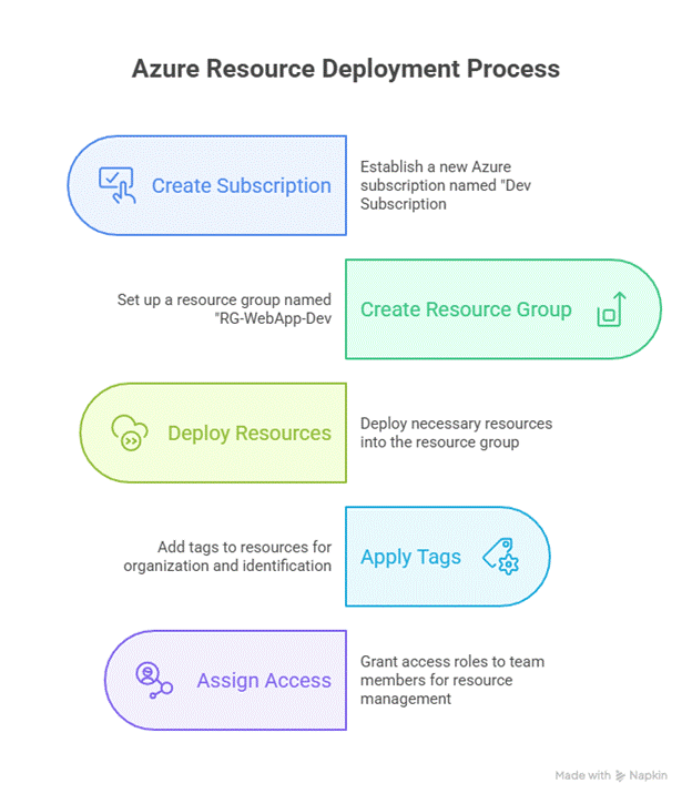 - Naming Conventions: Consistent names improve clarity, e.g., RG-ProjectName-Environment.