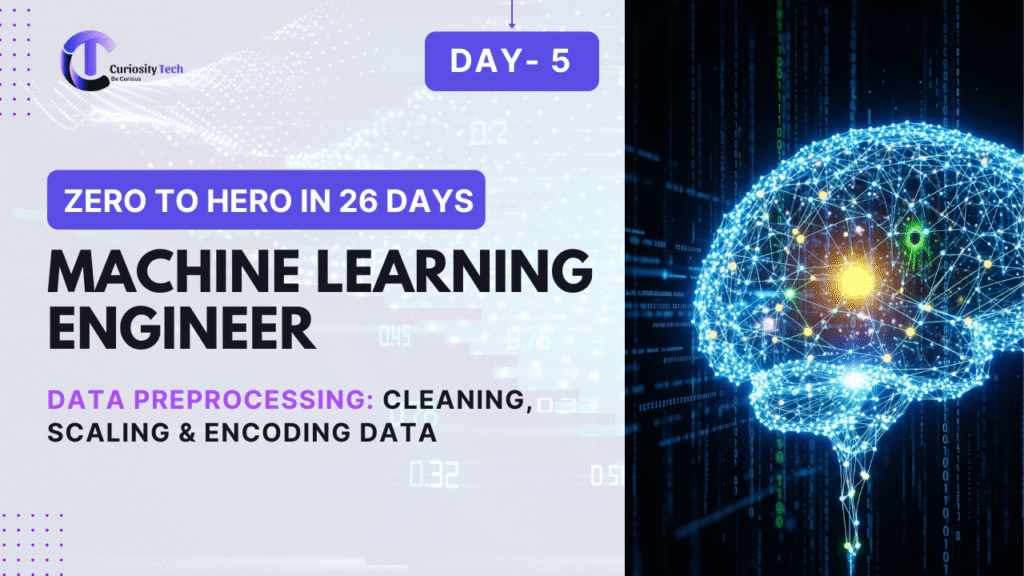 At CuriosityTech.in (Nagpur, Wardha Road, Gajanan Nagar), we emphasize that 70% of a data scientist or ML engineer’s work involves preprocessing. Today, we’ll explore preprocessing in extreme depth: cleaning, scaling, encoding, and making datasets model-ready.