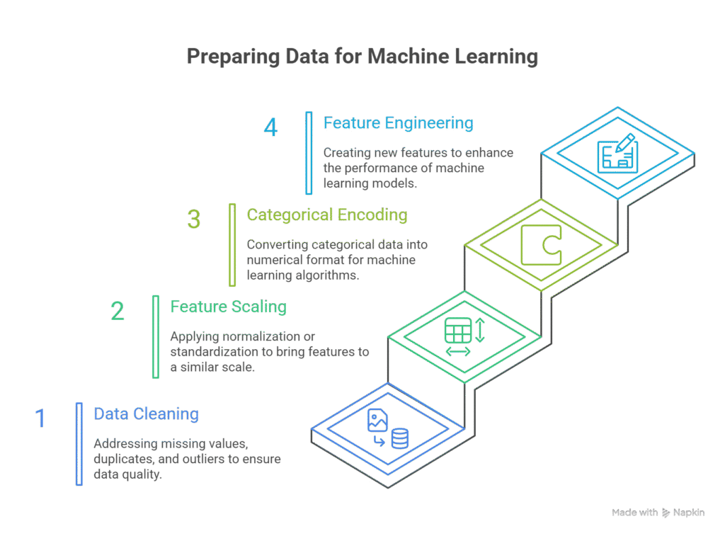 - Encoding Categorical Data → Converts non-numeric data into ML-compatible formats.